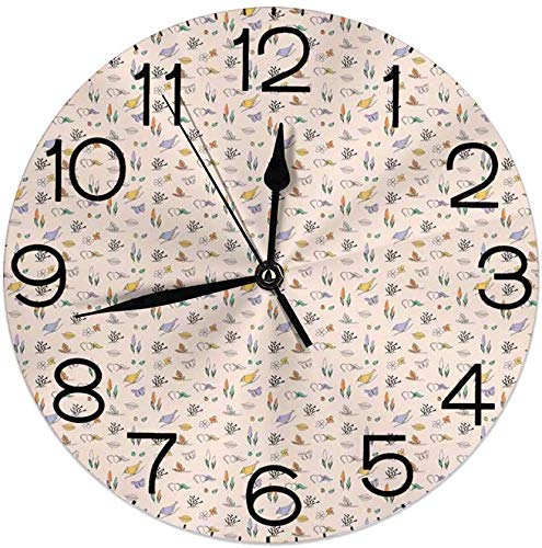 Feiyaodeng Runde Wanduhr Dekorative Von Hand Gezeichnete Bunte Skizze Von Naturfiguren Als Wiederbelebung Von Sprosslings Vogeln Und Marienkafern Fur