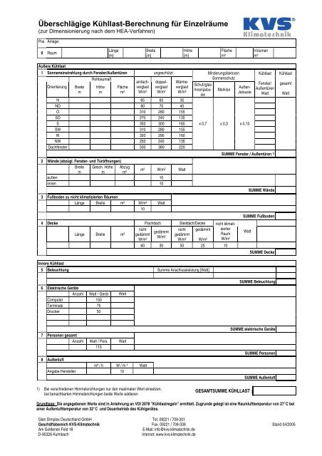 Uberschlagige Kuhllast Berechnung Fur Einzelraume Glen