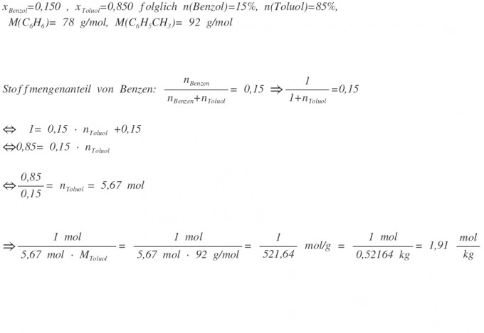 Molalitat Von Einer Losung Mit Bekanntem Stoffmengenanteil
