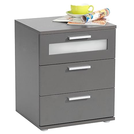 Caro Mobel Nachttisch Nachtschrank Nachtkommode Mary Fur Boxspringbett 45 X 53 X 38 Cm In Anthrazit Und 3 Schubladen Oberste Mit Glaseinsatz